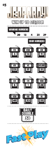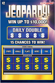 Skip the commercial breaks and go straight to the game show with the new Jeopardy! Scratch-off. Top prize of $10,000