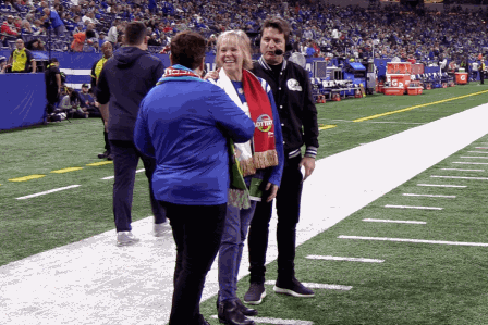 During halftime of the Colts versus Houston Texans game, Rochelle Gerulski of Avon won $7,500 by selecting two out of 10 cards containing prize amounts to reveal her total prize.