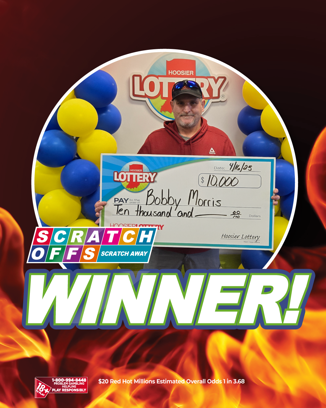 Bobby Morris will occasionally purchase a Hoosier Lottery Scratch-off. He enjoys the instant fun that Scratch-offs provide. He has won $200 playing Scratch-offs a few times, which is always a welcome surprise.